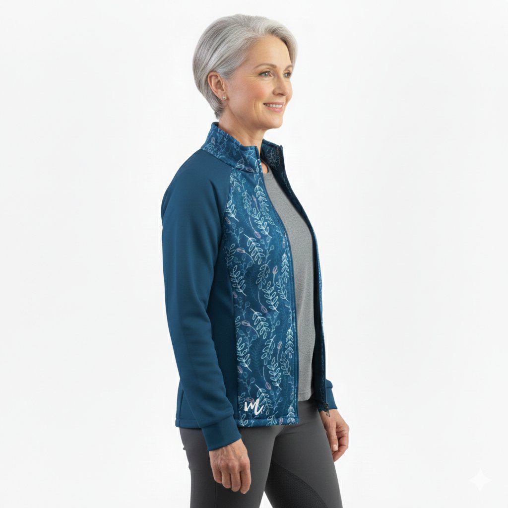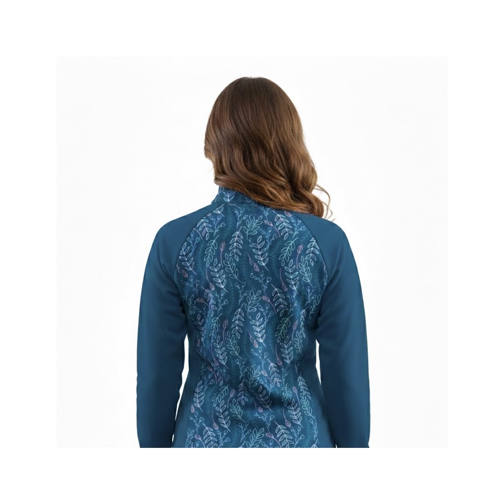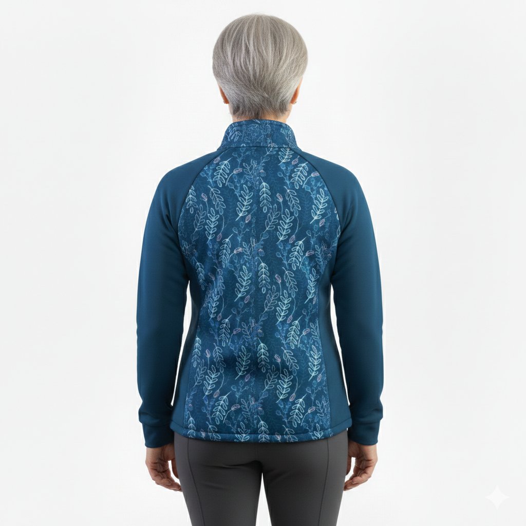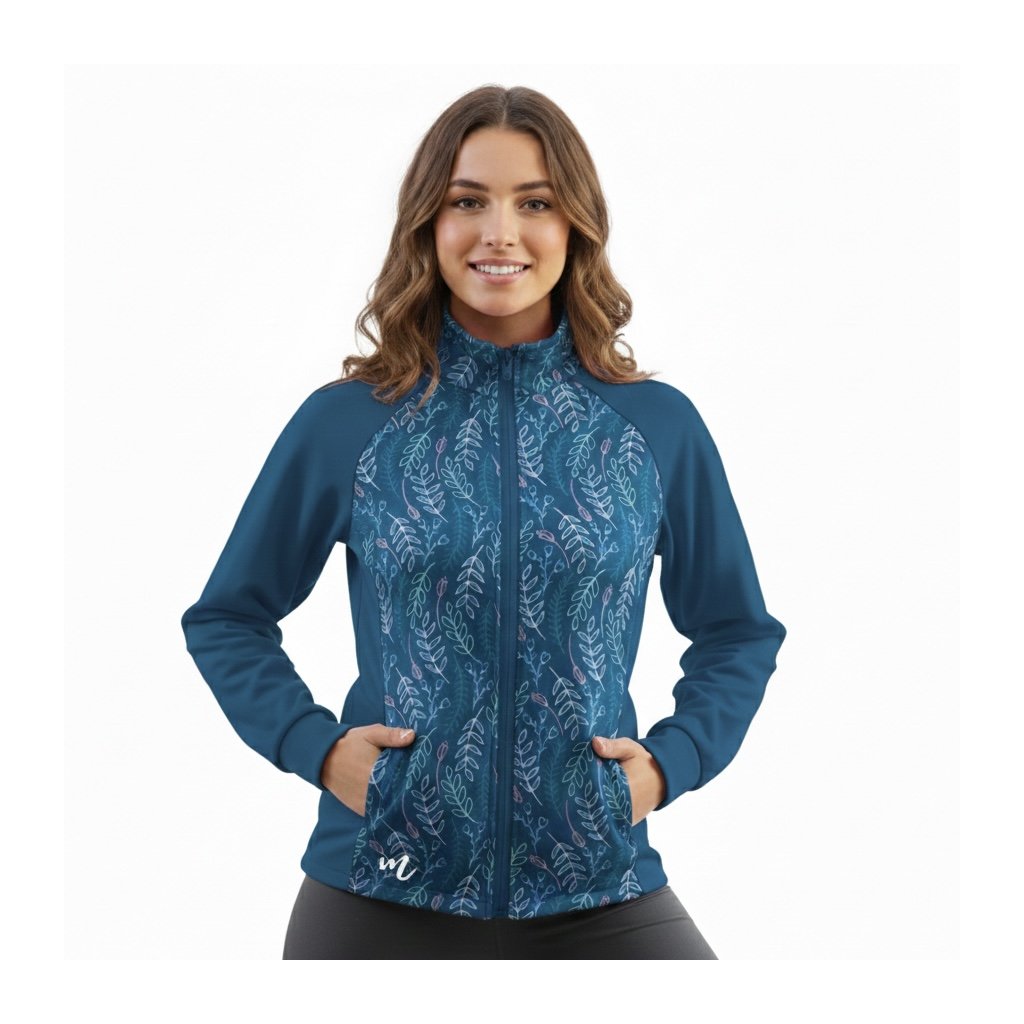 Dámská mikina Mishino „Lesní záře“ přináší harmonii přírody v moderním provedení. Hluboký modrý základ doplňuje jemný listový motiv v odstínech zelené, růžové a tyrkysové, který působí svěže a elegantně. Mikina je vyrobena z příjemného, pružného materiálu, který zaručuje pohodlí při každém pohybu. Praktický zip, stojáček a kapsy z ní dělají ideální volbu pro procházky, cestování i volnočasové aktivity. Tento kousek dokonale spojuje ženskost, styl a komfort – perfektní doplněk do každého šatníku.