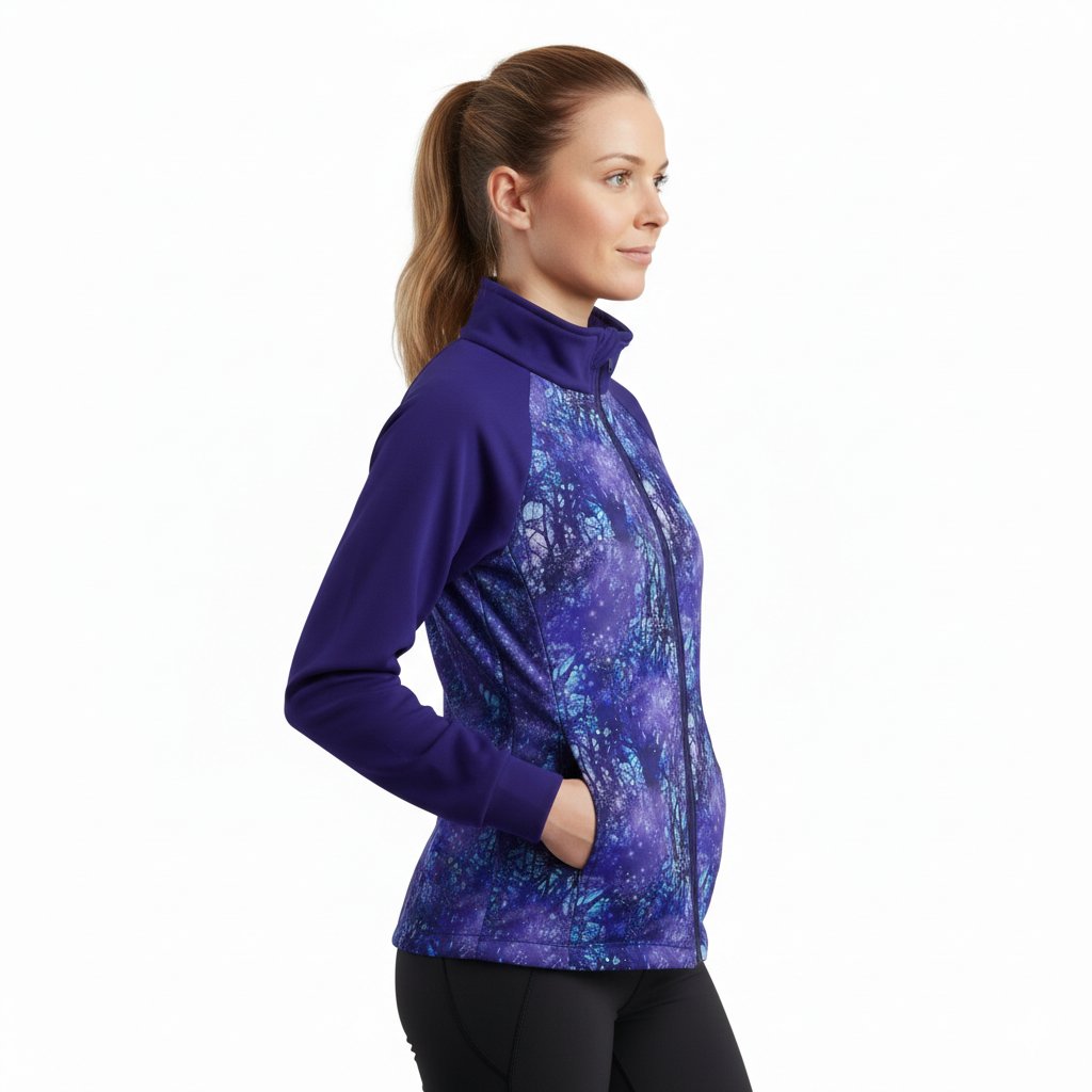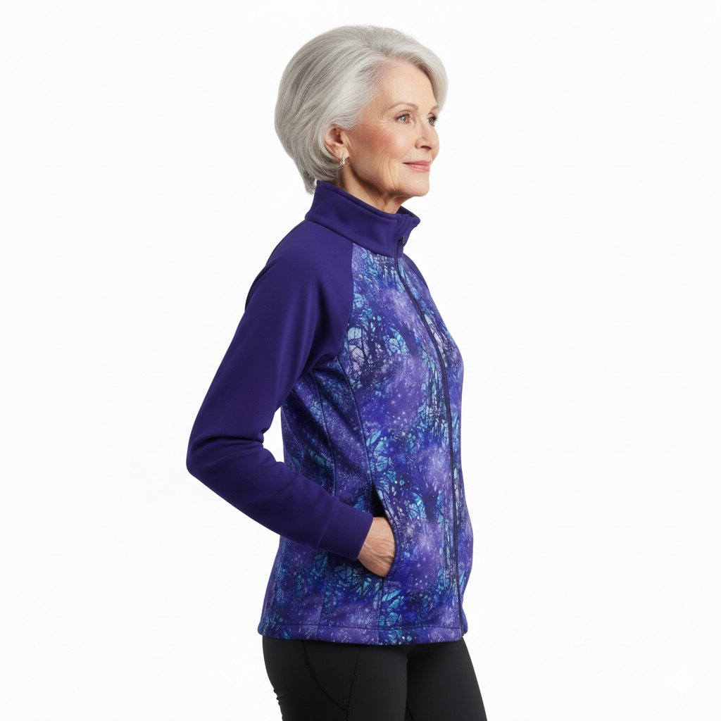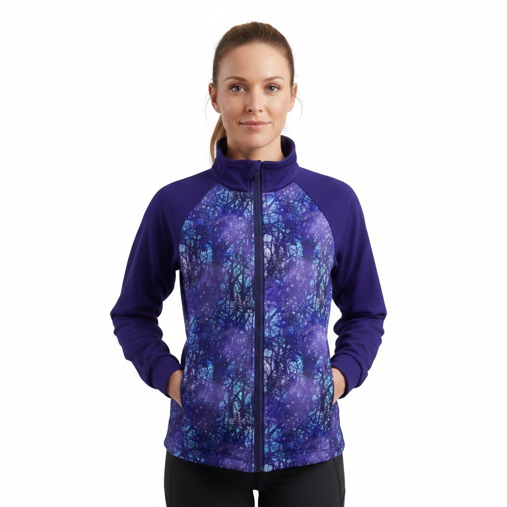 Dámská mikina Mishino „Magický les“ přináší kouzlo hvězdného nebe do vašeho šatníku. Kombinace sytých odstínů modré, fialové a černé vytváří dojem nočního lesa zalitého světlem hvězd. Tento magický design působí elegantně, originálně a naprosto jedinečně. Mikina je vyrobena z kvalitního, pružného a příjemného materiálu, který zaručuje komfort při každém nošení. Zip po celé délce, stojáček a kapsy doplňují praktický i stylový charakter. Ideální pro ženy, které chtějí vyniknout a přitom se cítit pohodlně.