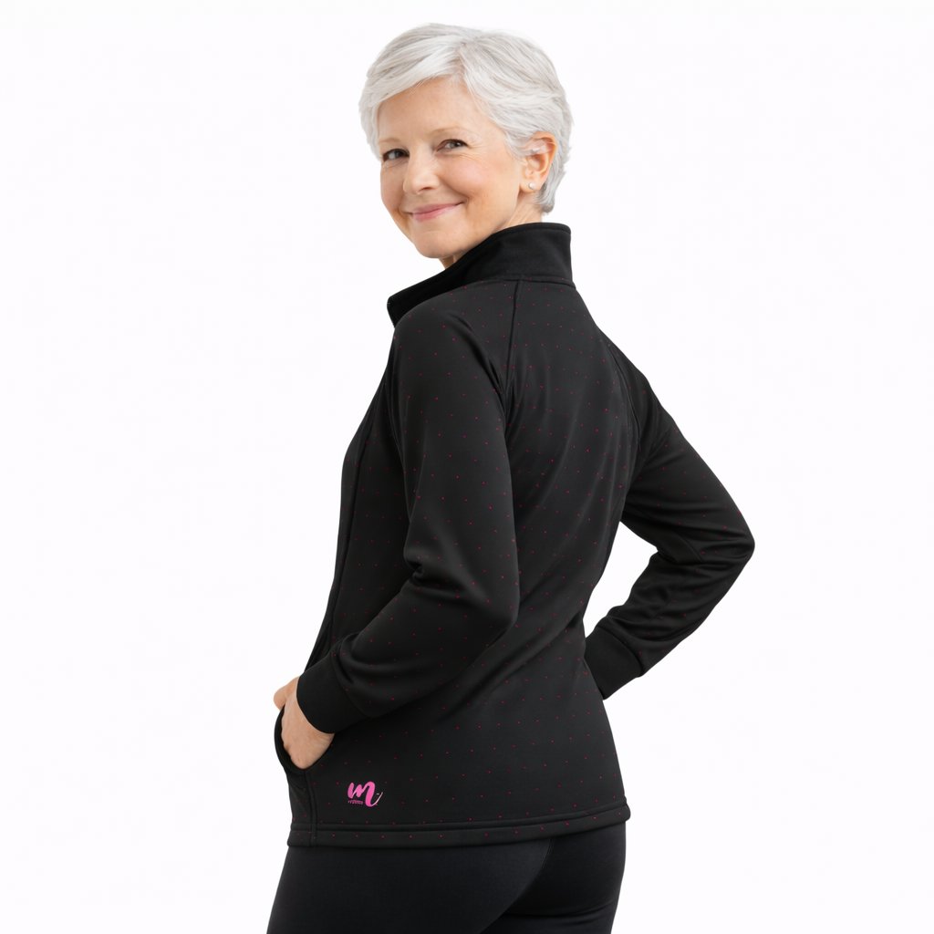 Dámská mikina Mishino „Černý šarm“ představuje dokonalou kombinaci elegance a minimalismu. Jemný černý základ s drobným růžovým puntíkem dodává tomuto modelu decentní ženskost a moderní styl. Mikina je vyrobena z kvalitního, pružného materiálu, který je měkký na dotek a příjemný při nošení. Zip po celé délce, praktické kapsy a stojáček zajišťují komfort i funkčnost. Skvěle se hodí pro každodenní nošení, do města i na volný čas. Ideální pro ženy, které chtějí vypadat stylově bez zbytečných ozdob.