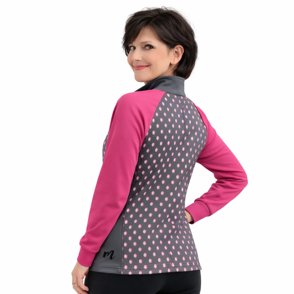 Dámská mikina Mishino „Růžový puntík“ spojuje hravost a styl v dokonale vyváženém designu. Kombinace šedého základu s drobným růžovým puntíkovým vzorem působí jemně a přitom moderně. Rukávy v sytě růžovém odstínu dodávají mikině svěží a ženský charakter. Mikina je vyrobena z kvalitního, pružného a měkkého materiálu, který zajistí pohodlí po celý den. Praktický zip, stojáček a kapsy doplňují její funkční i módní stránku. Ideální pro ženy, které chtějí být elegantní, ale s nádechem hravosti.