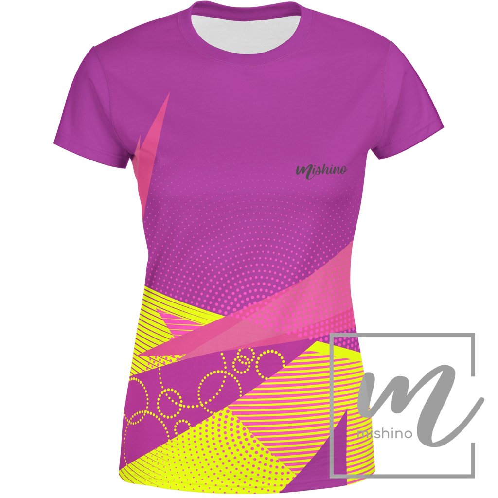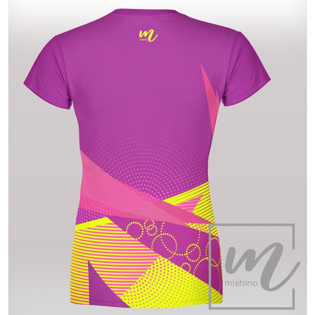 Design trička "Mishino Neon Yellow on Fuchsia" oživuje sportovní šatník výraznými barvami a dynamickým vzorem. Toto tričko kombinuje neonově žluté akcenty s fuchsiovým podkladem, poskytuje moderní a energický vzhled a zároveň zajišťuje pohodlí během aktivního nošení.