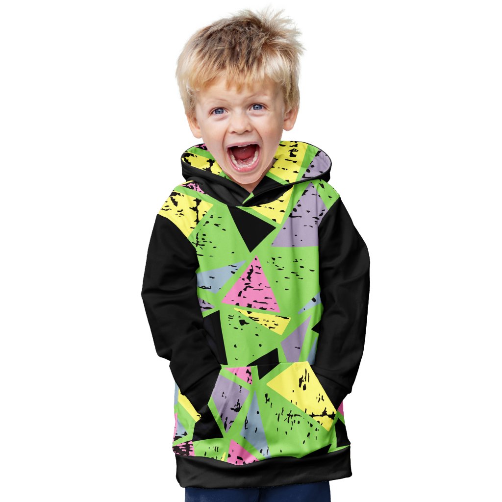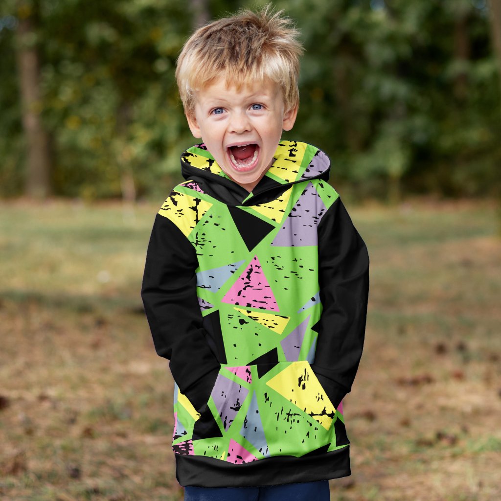 Chlapecká mikina Mishino "Neonové Trojúhelníky" přináší futuristický a moderní design plný kontrastních barev a geometrických tvarů. S výraznými neonově zelenými, růžovými a žlutými trojúhelníky na černém podkladu zaručuje tato mikina hravý a energický vzhled. Pohodlný materiál a prostorná klokaní kapsa poskytují komfort a praktičnost pro každodenní nošení i dobrodružství.