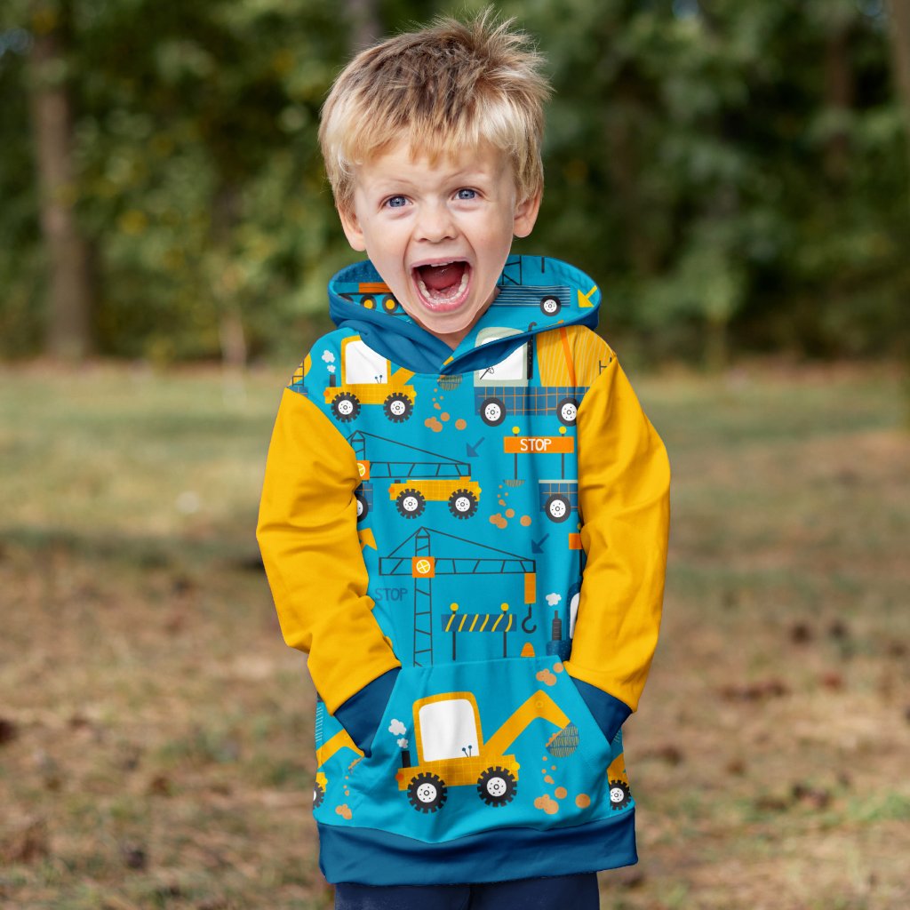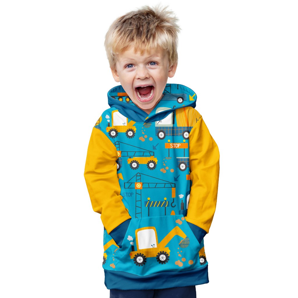 Chlapecká mikina Mishino "Stavbaři v Akci" je ideální volbou pro malé fanoušky stavebních strojů. Barevný potisk s bagry, jeřáby a dalšími stavebními stroji na tyrkysovém podkladu přináší hravost a dobrodružství do každého dne. Žluté rukávy a kapuce s kontrastním vnitřkem dodávají mikině dynamický vzhled, zatímco měkký materiál a praktická klokaní kapsa zaručují pohodlí a funkčnost pro každodenní nošení.