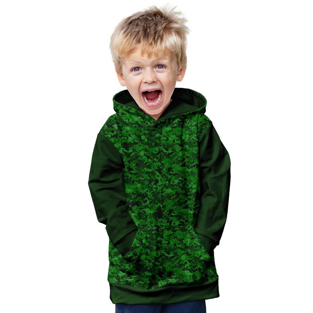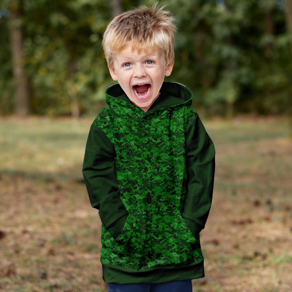 Chlapecká mikina Mishino "Zelený Maskáč" přináší moderní pixelový vzor inspirovaný vojenským maskováním. Díky tmavým a světlým odstínům zelené je tato mikina perfektní pro malé dobrodruhy, kteří milují pobyt venku a objevování. Měkký materiál zajišťuje maximální pohodlí, zatímco praktická kapuce a klokaní kapsa poskytují funkčnost a ochranu před větrem. Ideální pro každodenní nošení i outdoorová dobrodružství.