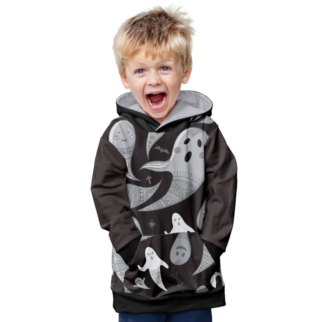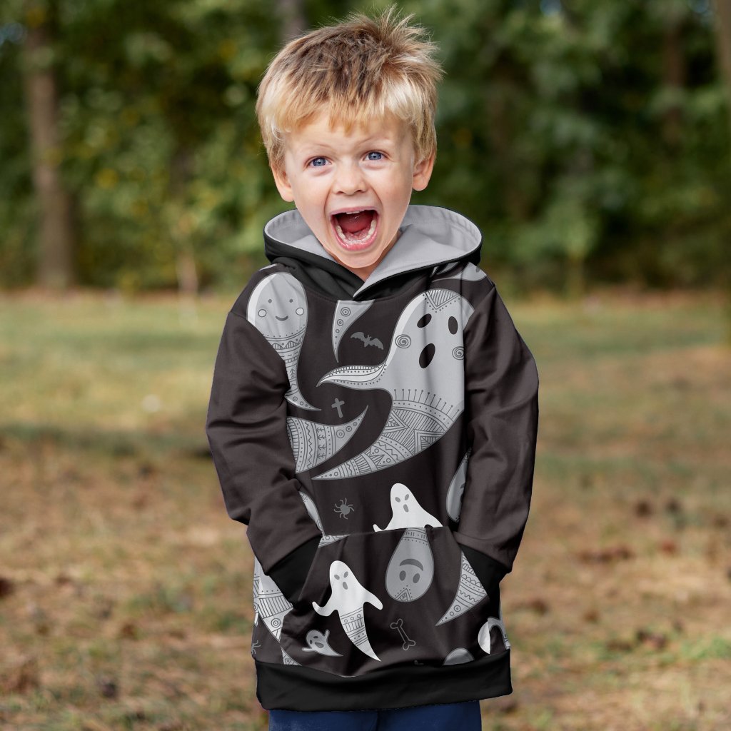 Chlapecká mikina Mishino "Duchové v Noci" je ideální pro malé milovníky strašidelných příběhů. S šedými duchy různých tvarů a výrazy na černém podkladu vytváří mikina tajemnou a zároveň hravou atmosféru. Kontrastní šedá kapuce a hnědé rukávy dodávají styl a eleganci. Měkký materiál a klokaní kapsa zajišťují pohodlí pro každodenní nošení.