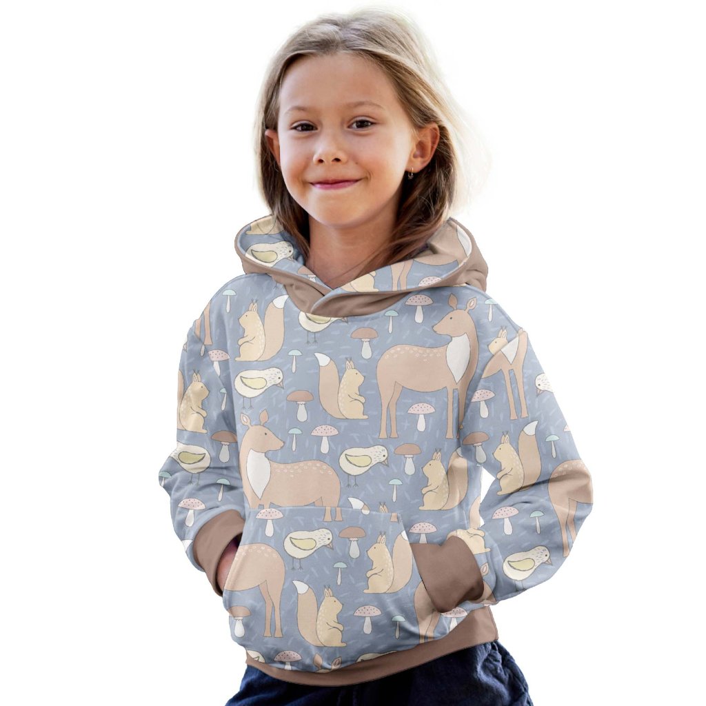 Mikina Forest Friends od Mishino je ideální pro všechny slečny, které milují přírodu a zvířátka. Jemný pastelový potisk s motivy lesních zvířátek, jako jsou lišky, veverky a srnky, na světle modrém podkladu, vytváří kouzelný a hravý design. Pohodlný střih a měkký materiál zajistí komfort na každodenní nošení i dobrodružství.