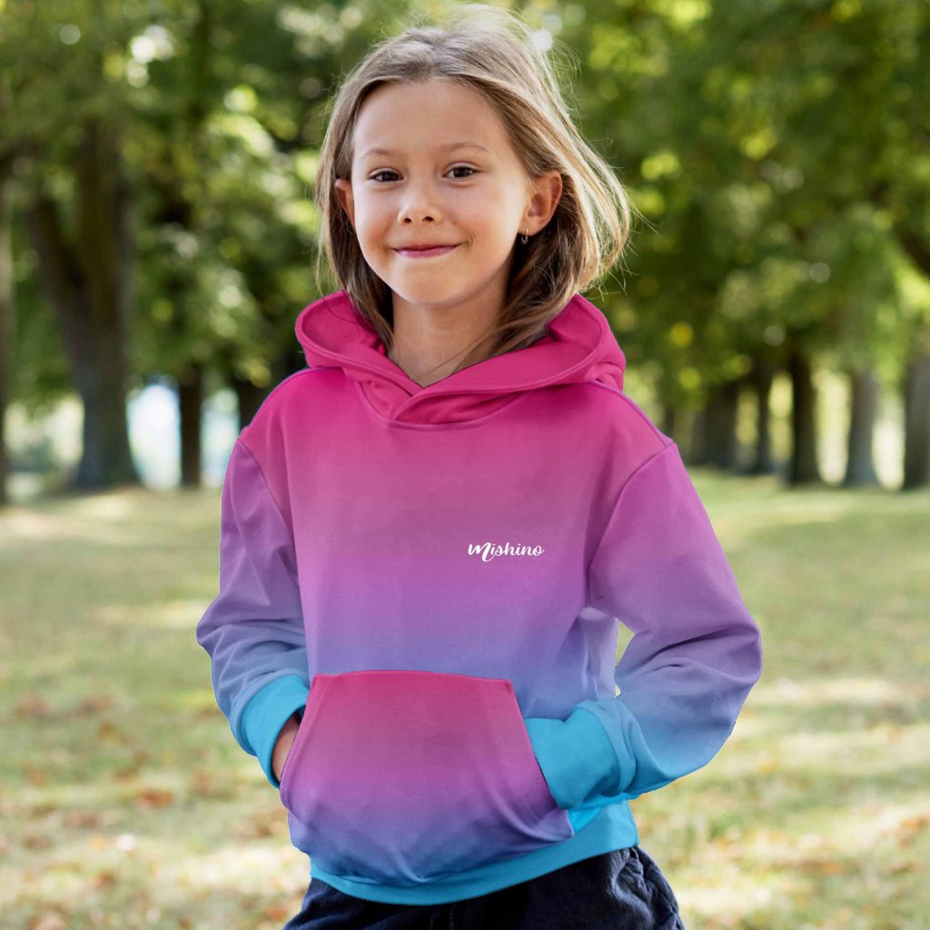Mikina Rainbow Ombre od Mishino je perfektní volbou pro malé slečny, které milují barevnost a jemnost. Ombré přechod z malinově růžové do tyrkysové barvy vytváří moderní a stylový vzhled. Pohodlný střih a měkký materiál zajistí maximální komfort pro každodenní nošení i hravé dny.