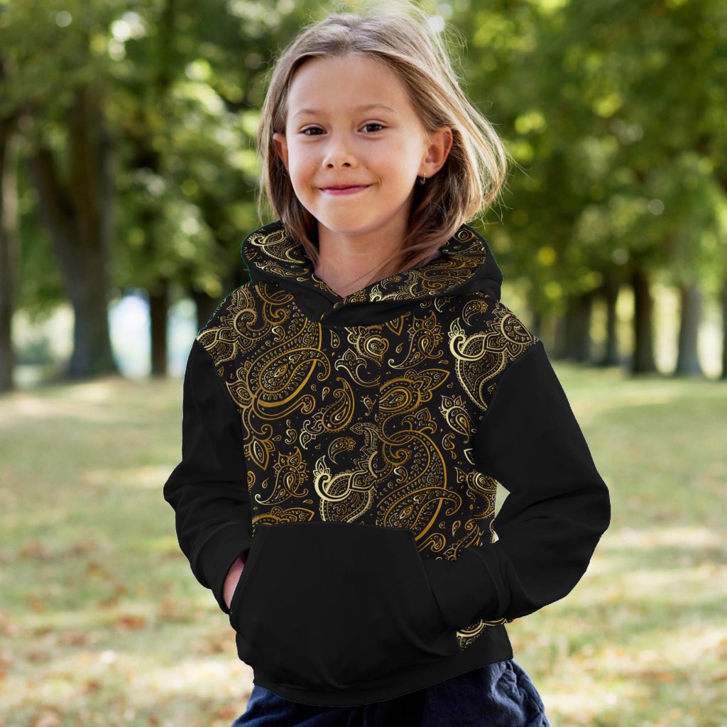 Pro všechny slečny, mikina Black & Gold Paisley od Mishino nabízí elegantní a sofistikovaný styl. Černé rukávy a kapuce perfektně doplňují zlatý paisley vzor na přední části, který dodává mikině luxusní vzhled. Pohodlný střih a jedinečný design jsou ideální pro každodenní nošení i zvláštní příležitosti.Kompletně ušito v české dílně s důrazem na kvalitu a detaily.