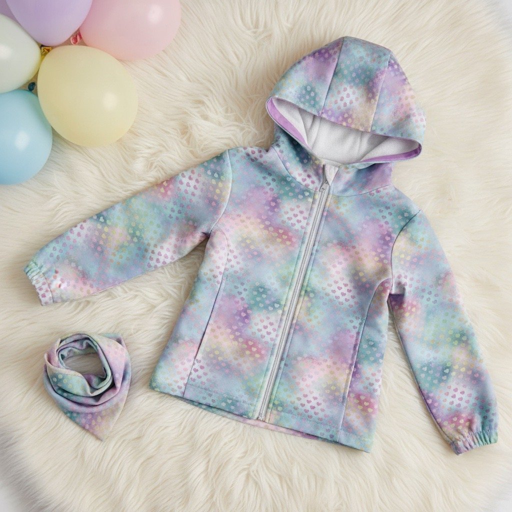 Tato kouzelná softshellová bunda pro dívky od značky Mishino přitahuje pozornost svým hravým duhovým vzorem s barevnými srdíčky. Jemné přechody pastelových barev v kombinaci s roztomilými srdíčky vytvářejí bundu, kterou si každá malá slečna zamiluje. Ideální pro maminky a babičky, které hledají stylový, ale zároveň praktický kousek do šatníku svých dětí. Díky kvalitnímu softshellovému materiálu bunda odolává větru i dešti, což ji činí perfektním společníkem na venkovní dobrodružství za každého počasí.