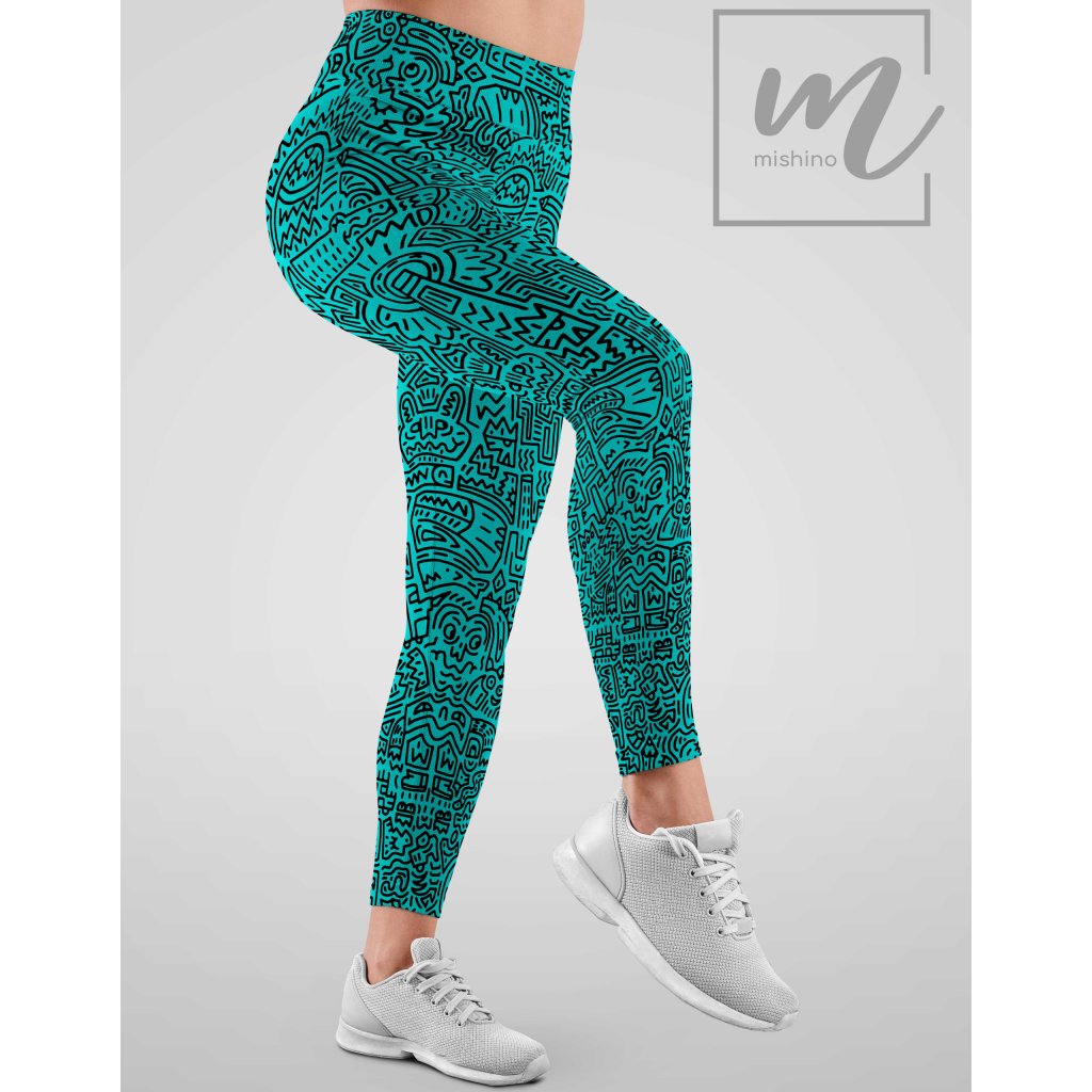 Legíny Mishino "Chaos" jsou ztělesněním života a energie, které přináší do vašeho šatníku osvěžující tyrkys. Tento bohatý a sytý odstín je pozadím pro složité černé linie a vzory, jež připomínají umělecké dílo inspirované dávnými civilizacemi a písmem. Tento design je nejen oku lahodící, ale také skvěle zvýrazní vaši postavu a dodá sebevědomí při jakékoli aktivitě. Ať už jdete do tělocvičny, na jógu nebo se jen chcete stylově obléknout, tyto legíny vám dodají nejen komfort, ale i jistotu, že vypadáte skvěle.