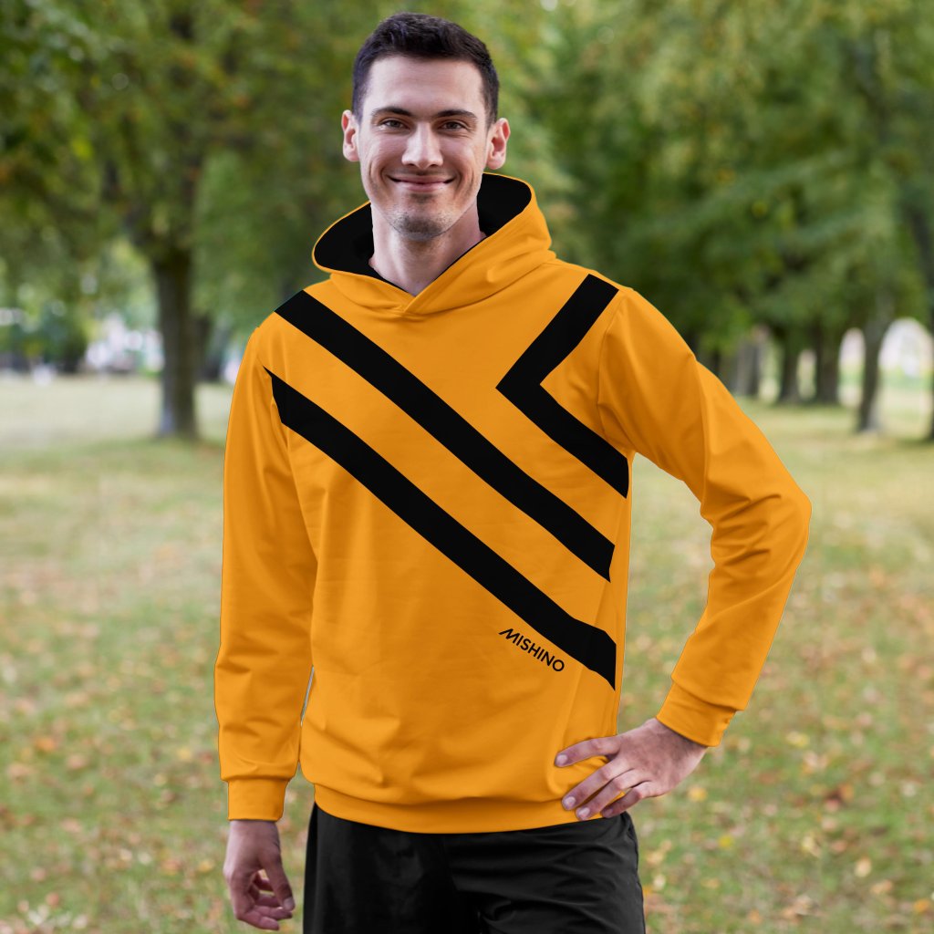 Tato moderní pánská mikina MISHINO Oliver je skvělým doplňkem pro každého muže, který hledá kombinaci pohodlí a stylu. Mikina ve výrazné žluté barvě je zdobena šikmými černými pruhy, které dodávají odvážný a sportovní vzhled. Pruhy jsou navrženy tak, aby opticky zeštíhlily postavu a dodaly mikině dynamický charakter. Logo značky MISHINO je decentně umístěno na přední části, což podtrhuje její designovou kvalitu. Mikina je ideální pro volnočasové aktivity i pro běžné nošení, a díky svému unikátnímu designu se stane středobodem vašeho outfitu.