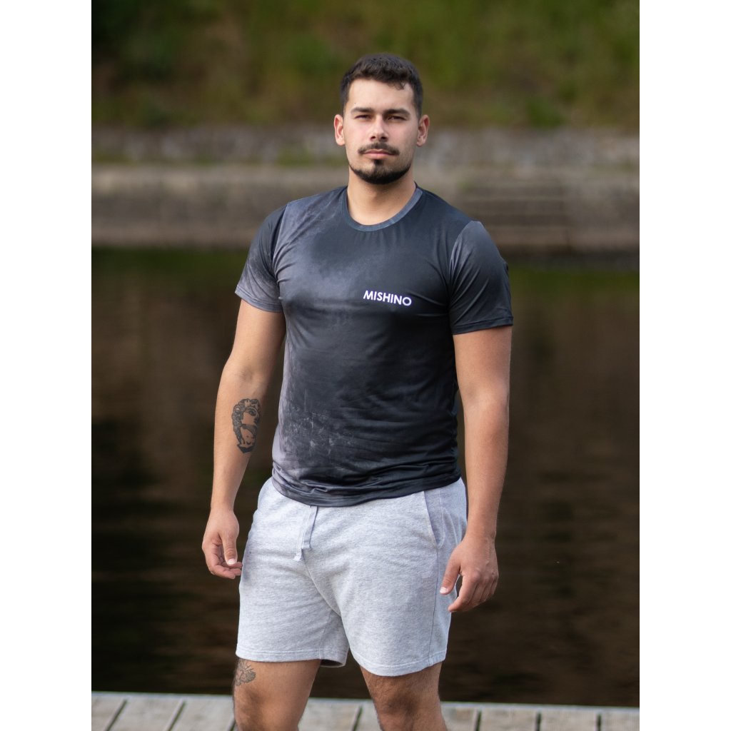 Pánské černé tričko Mishino s jemným kouřovým vzorem a decentním logem na levé straně hrudi. Ideální pro stylové a nenápadné outfity. Tričko je navrženo pro vynikající pohodlí a odvod potu během fyzické aktivity.
