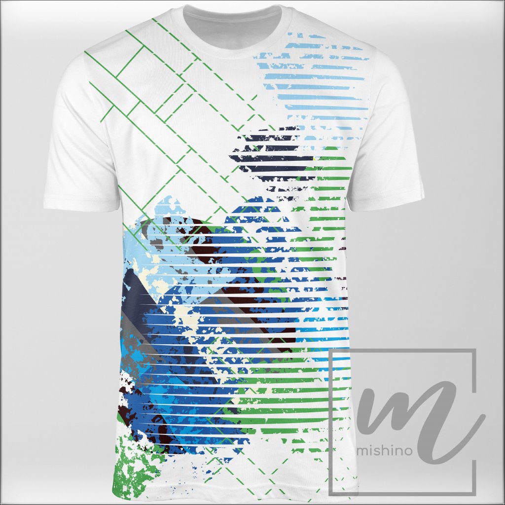pánské funkční tričko Mishino_modrozelené fleky na bílé