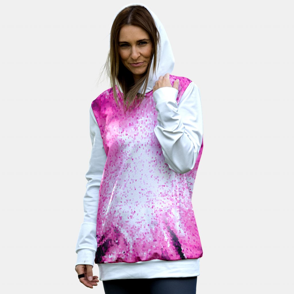 růžovo purpurová mozaika dámská mikina ELIS s kapucí