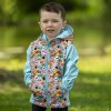 Každá kapuce bundičky je podšitá matnou sportovní teplákovinou. Barvu podšívky kapuce ladíme se vzorem na bundičce.