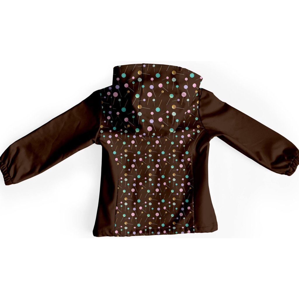 Dívčí softshellová bunda "Candy Sprinkle" přináší hravost a radost s jejím lákavým vzorem lízátek a bonbónů na teplém hnědém pozadí. Tato bunda je ideální pro rozjasnění každodenních dobrodružství a je stejně praktická, jako je roztomilá, s voděodolnou a prodyšnou konstrukcí a odnímatelnou kapucí.